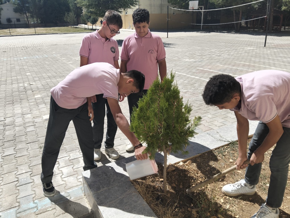 "Yeşil Vatan - Benim Okulum Geleceğe Çare" Etkinlikleri kapsamında okulumuzda yapılan ağaçlar çapalanmış ve sulanmmıştır.